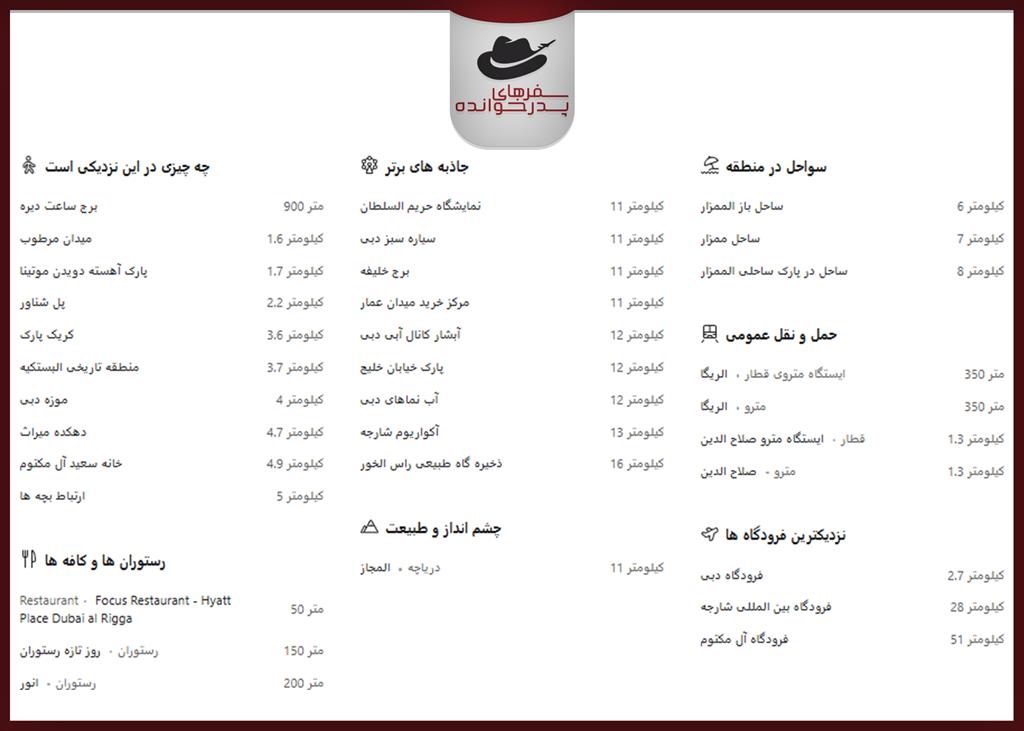 دسترسی آسان به مناطق دیگر دبی: از طریق مترو، تاکسی یا قایق، تمام نقاط مهم دبی در دسترس هستند.