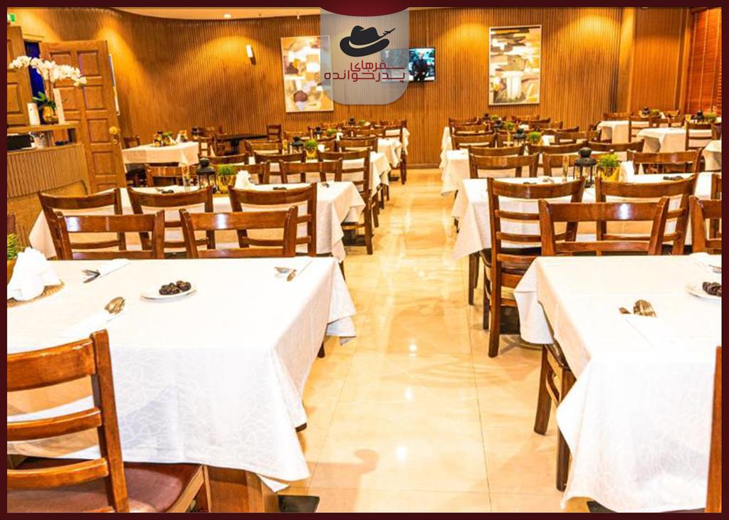 محیط رستوران با دکوراسیون مدرن و نورپردازی ملایم طراحی شده است. چیدمان صندلیها راحت بوده و برای خانوادهها و گروههای تجاری مناسب است.