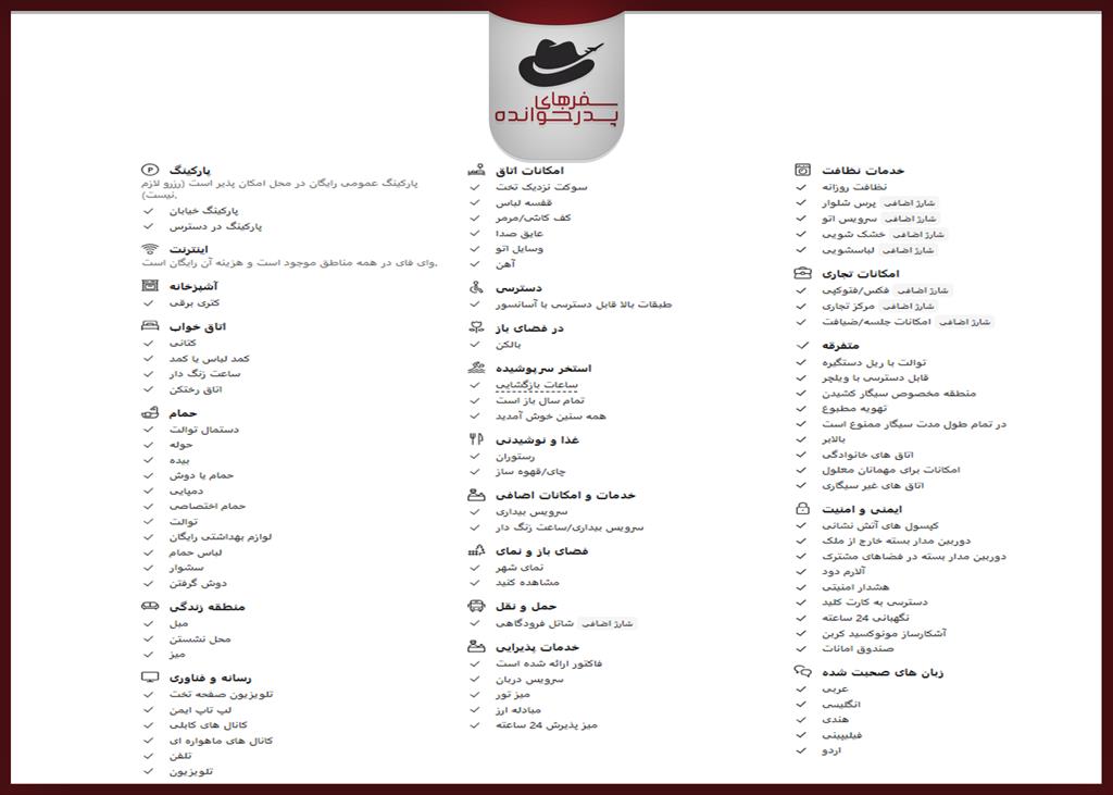 امکانات موجود در اتاق‌ها و سوئیت‌ها