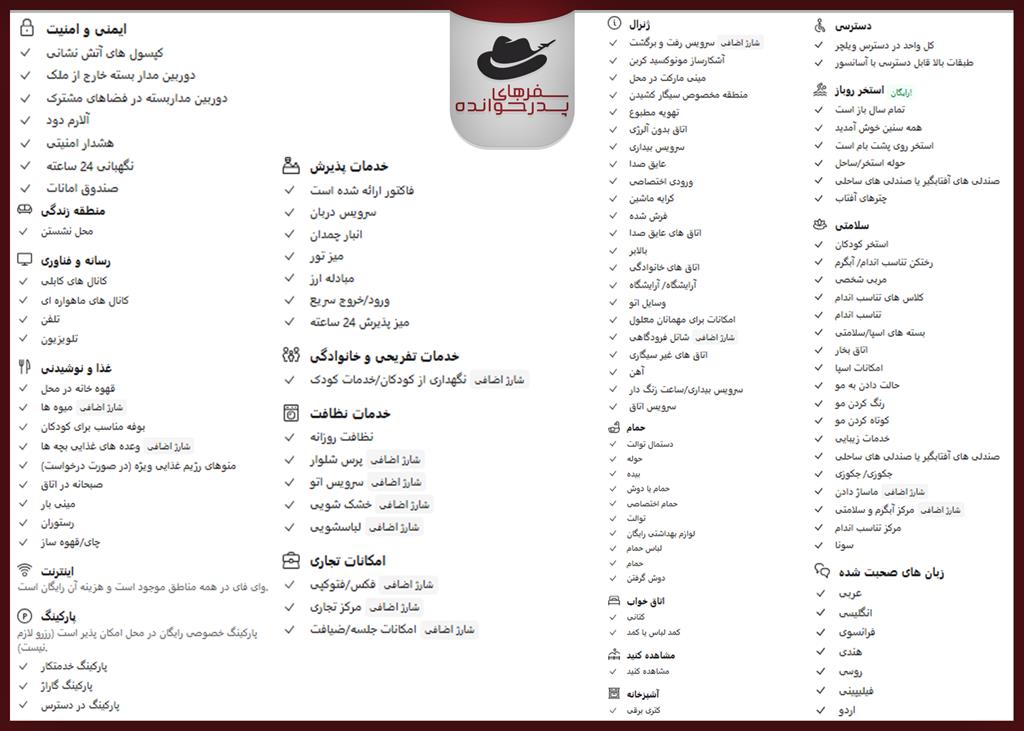 خدمات پذیرش و راهنمایی برای مهمانان در هر ساعت از شبانهروز.