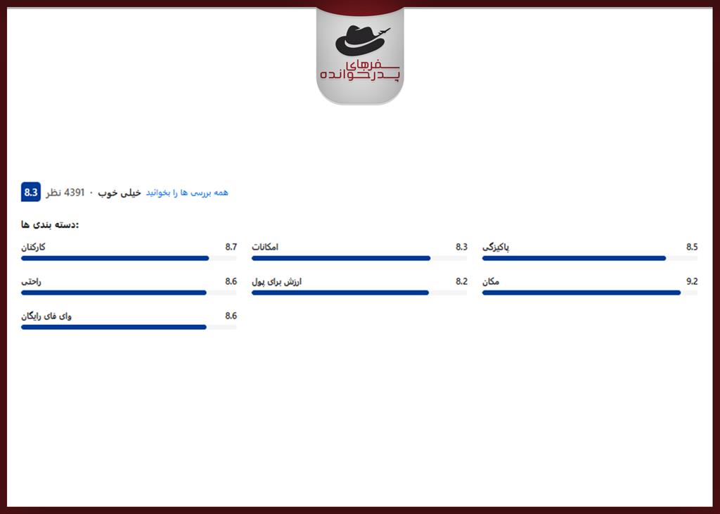 مشکلات در خدمات نظافت: در برخی نظرات، مسافران از نارضایتی نسبت به کیفیت نظافت اتاقها یا تاخیر در خدمات اتاق شکایت کردهاند. اگرچه این نظرات محدود بودهاند، اما برای برخی مهمانان تأثیرگذار بوده است.