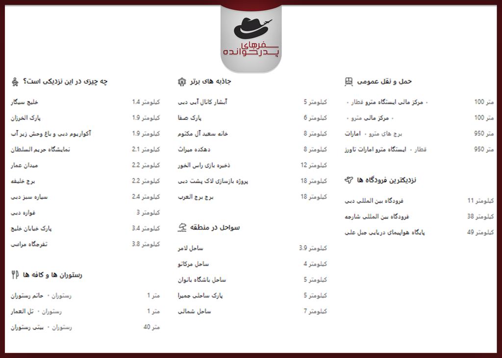 نزدیکی به جاذبهها: دسترسی سریع به دبی مال، برج خلیفه، ساحل جمیرا و دبی مارینا.