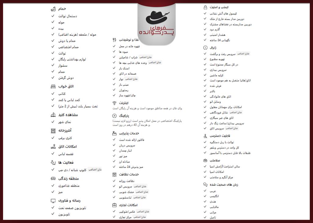 صندوق امانات: برای نگهداری اشیای قیمتی مهمانان در هر اتاق.