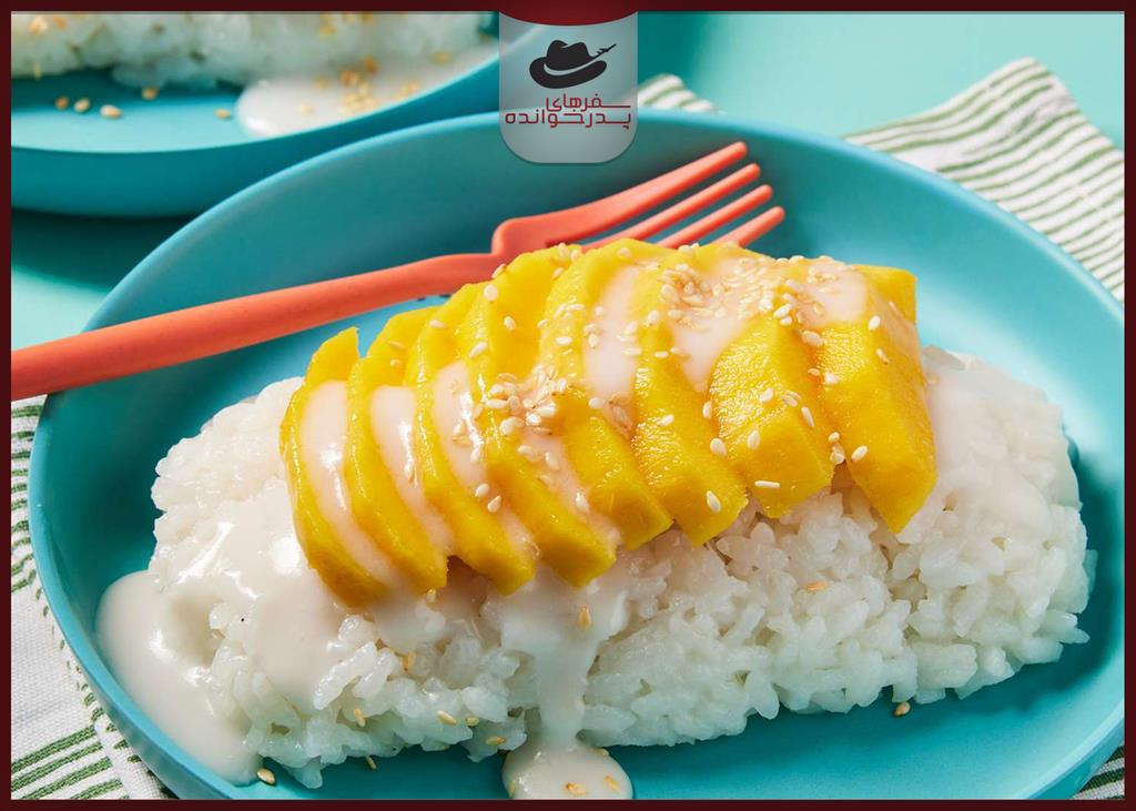یکی از محبوبترین دسرهای تایلندی، مانگو استیکی رایس است که ترکیبی از برنج چسبناک شیرین، شیر نارگیل و انبه تازه است. برنج چسبناک با شیر نارگیل و شکر مخلوط شده و سپس با برشهای انبه رسیده سرو میشود. گاهی دانههای کنجد روی آن پاشیده میشود تا عطر و طعم بیشتری به آن اضافه کند. این دسر خوشطعم یک پایان عالی برای یک وعده غذایی تایلندی است.